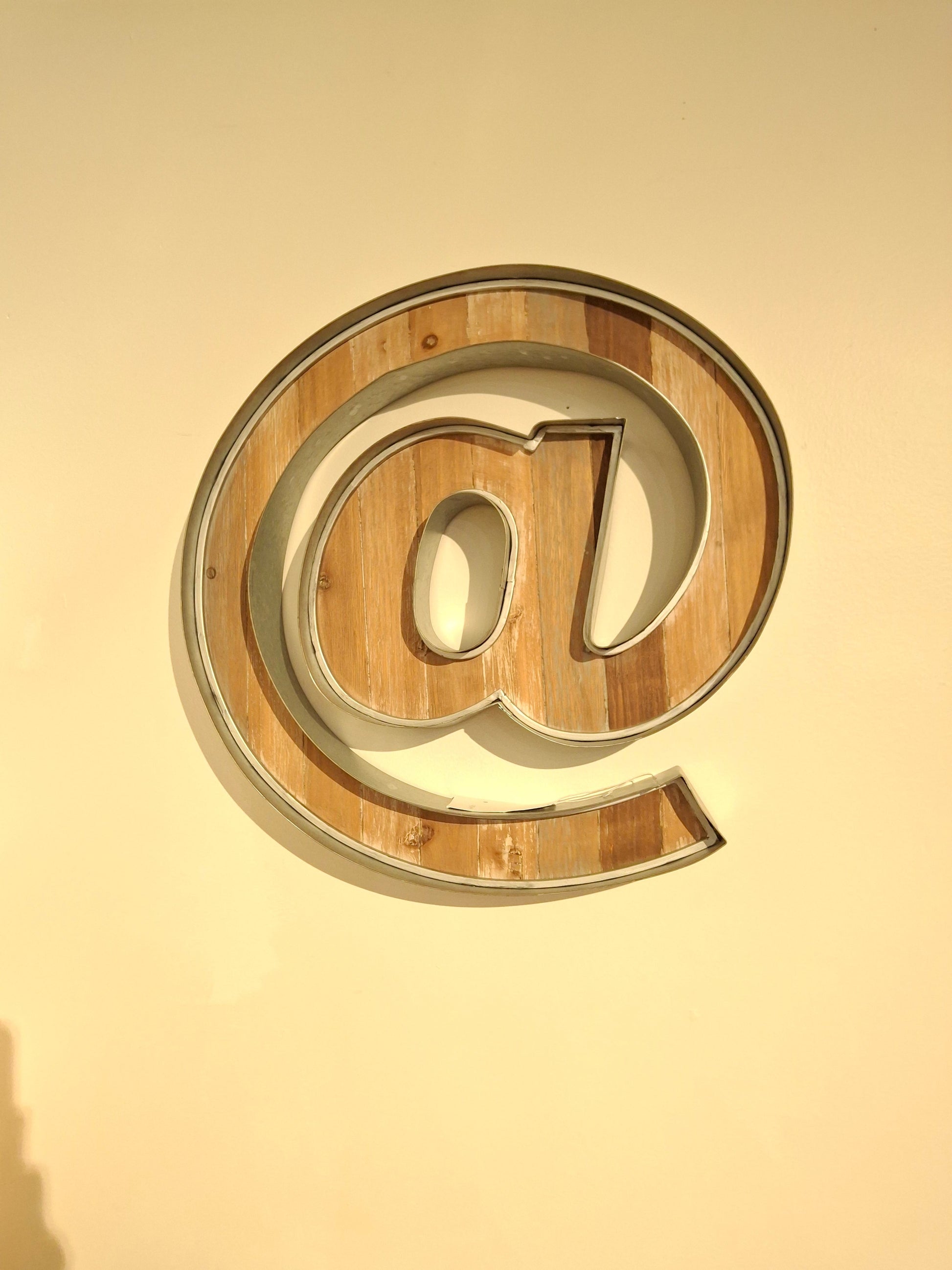 Metal and wood "@" wall decor