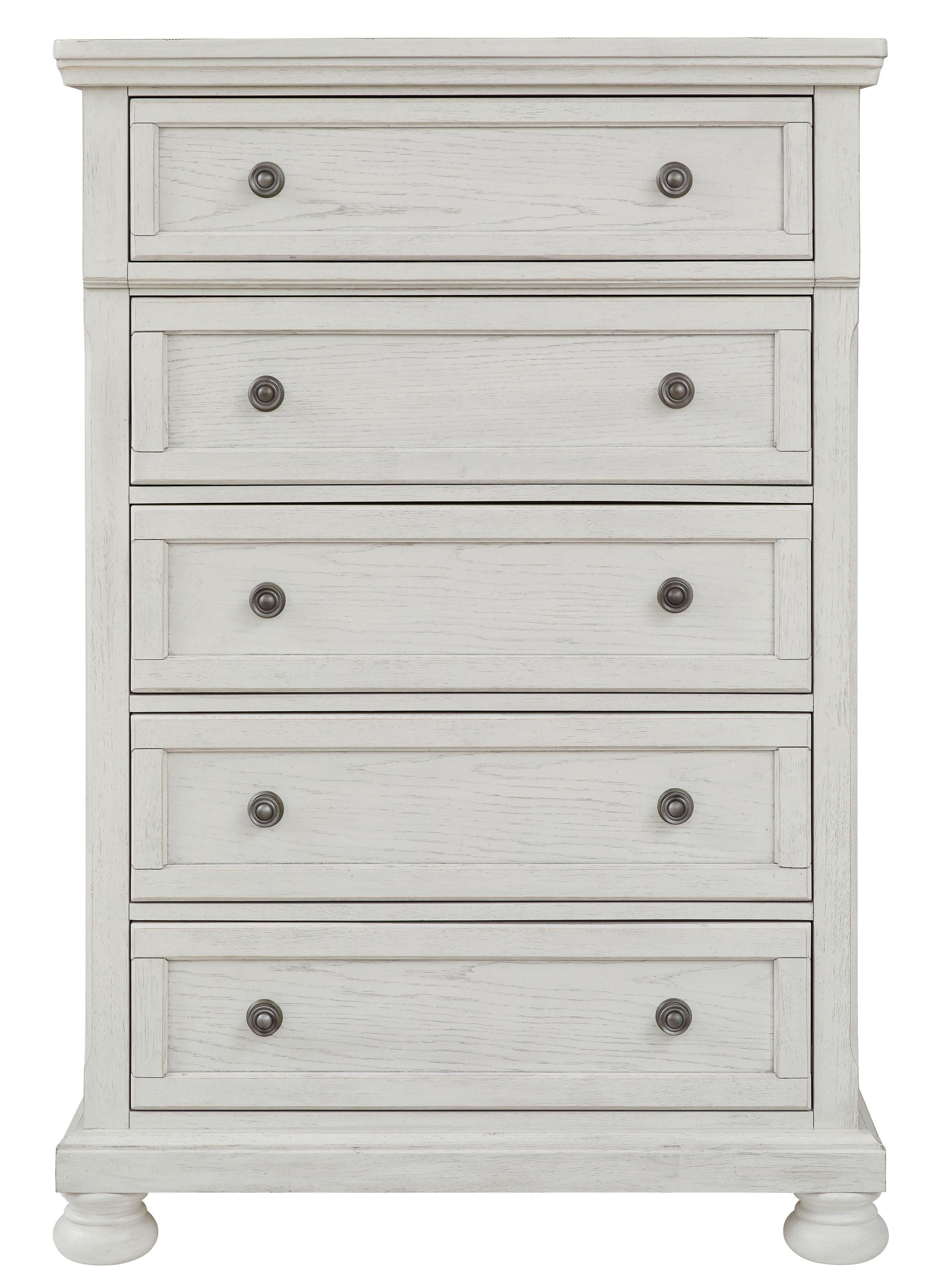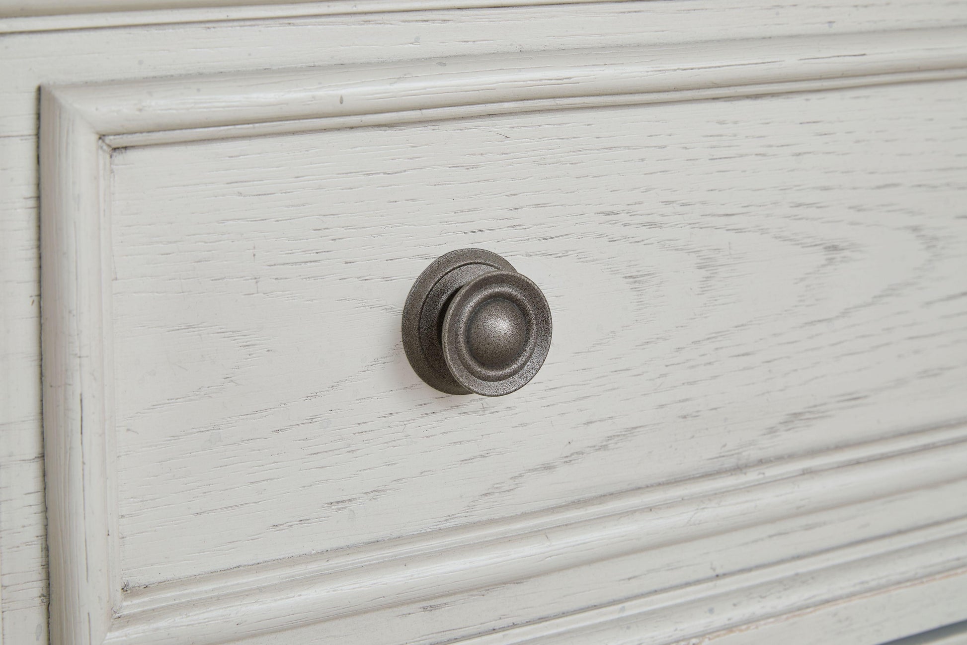Elegant, timeless furnishings take your bedroom to the next level. Nothing does that better than this chest. The antiqued white finish with a wonderful grain texture oozes sophistication, while the dark bronze-tone hardware adds an ornate touch. A felt-lined top drawer rounds out the piece for the ultimate tasteful bedroom.