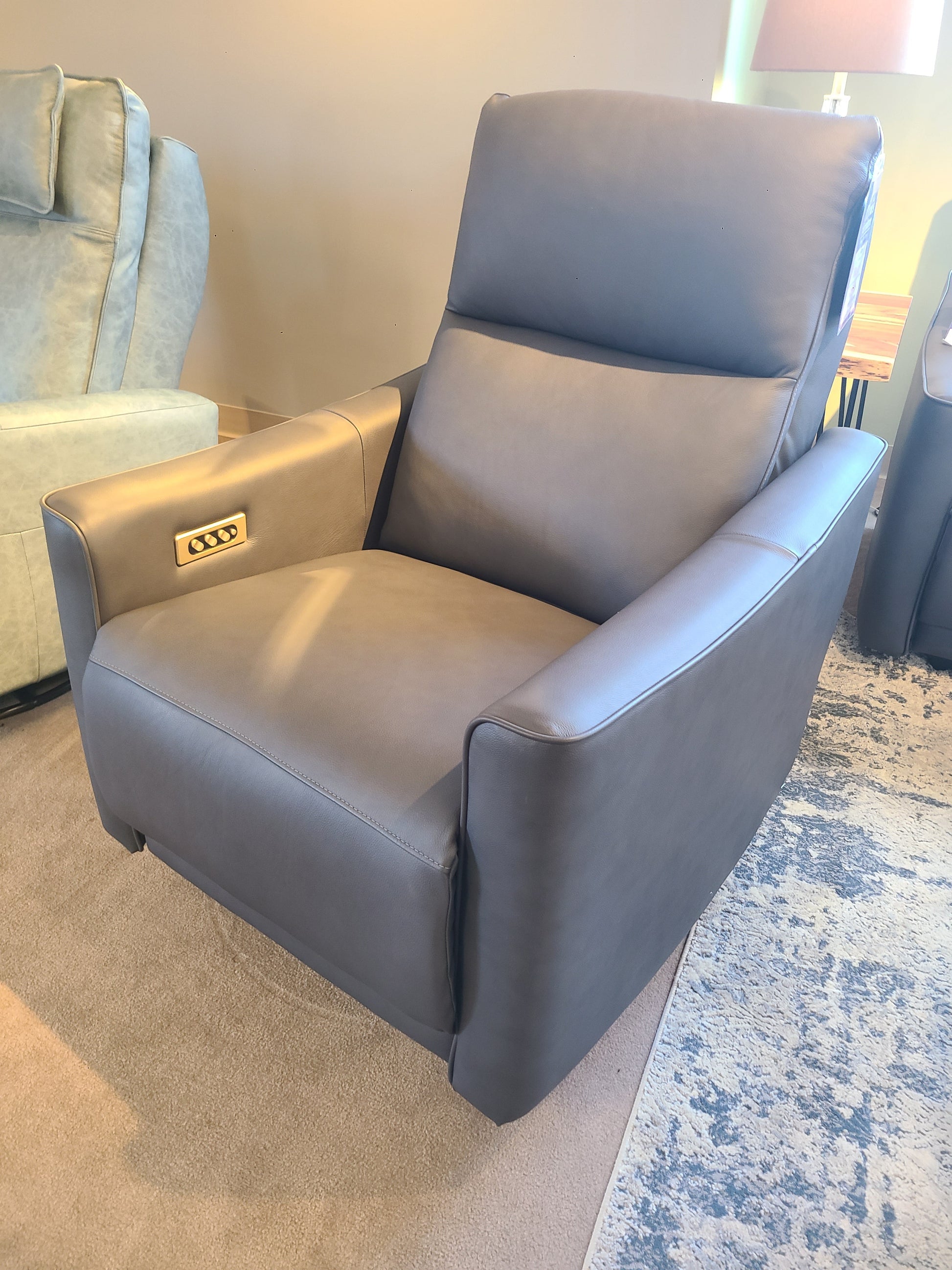 The Art of Options Power Recliner maximizes your comfort with a power recline function, adjustable headrest and lumbar technology, and a striking Dark Blue Italian leather. Enjoy top of the line luxury with this recliner, perfect for any modern living space.