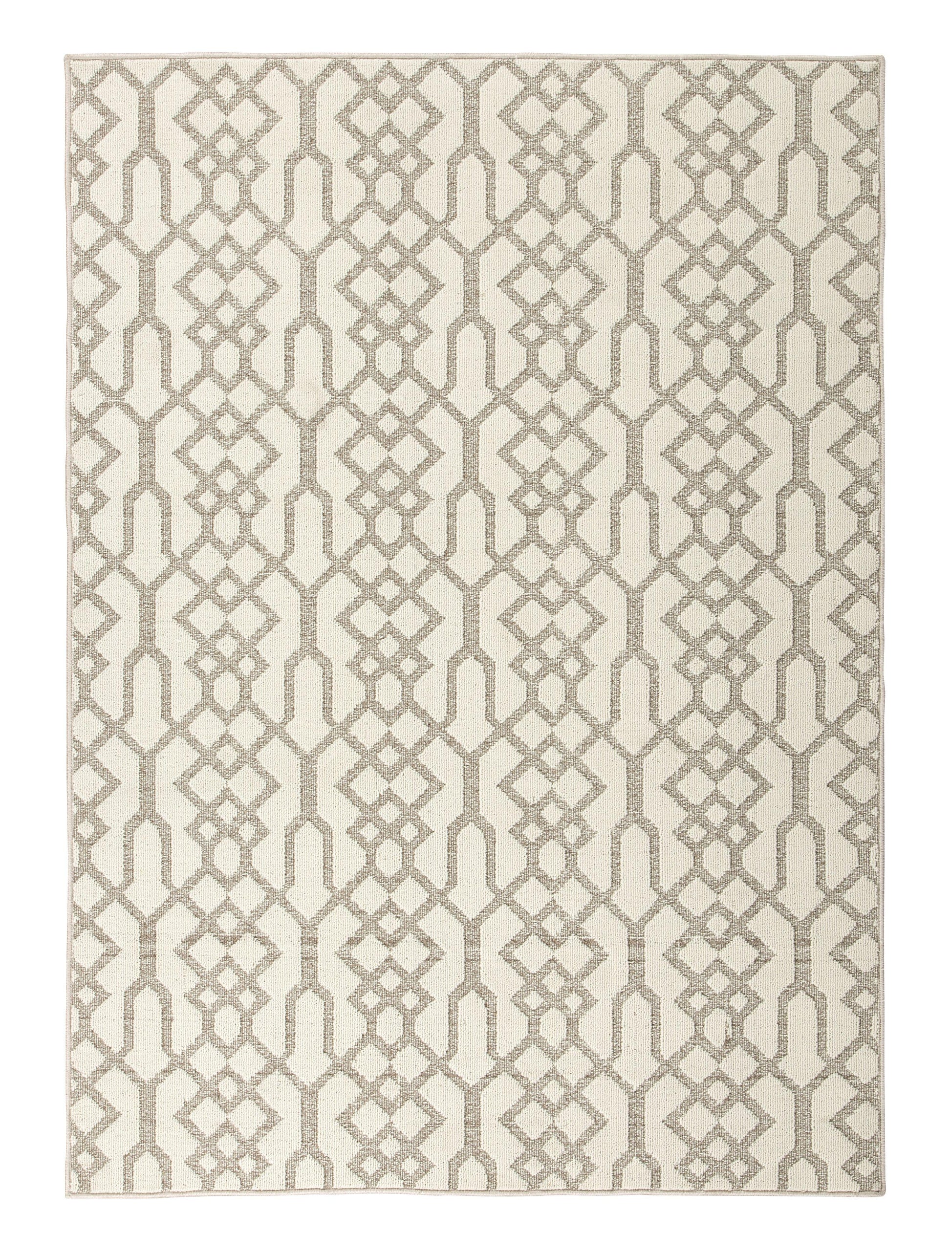 Roll out casual style with this large accent rug. Its repeated linked chain pattern is intricate, yet easy to love. Natural and cream colors found in the design provide neutrality—great for matching it to any room's decor.