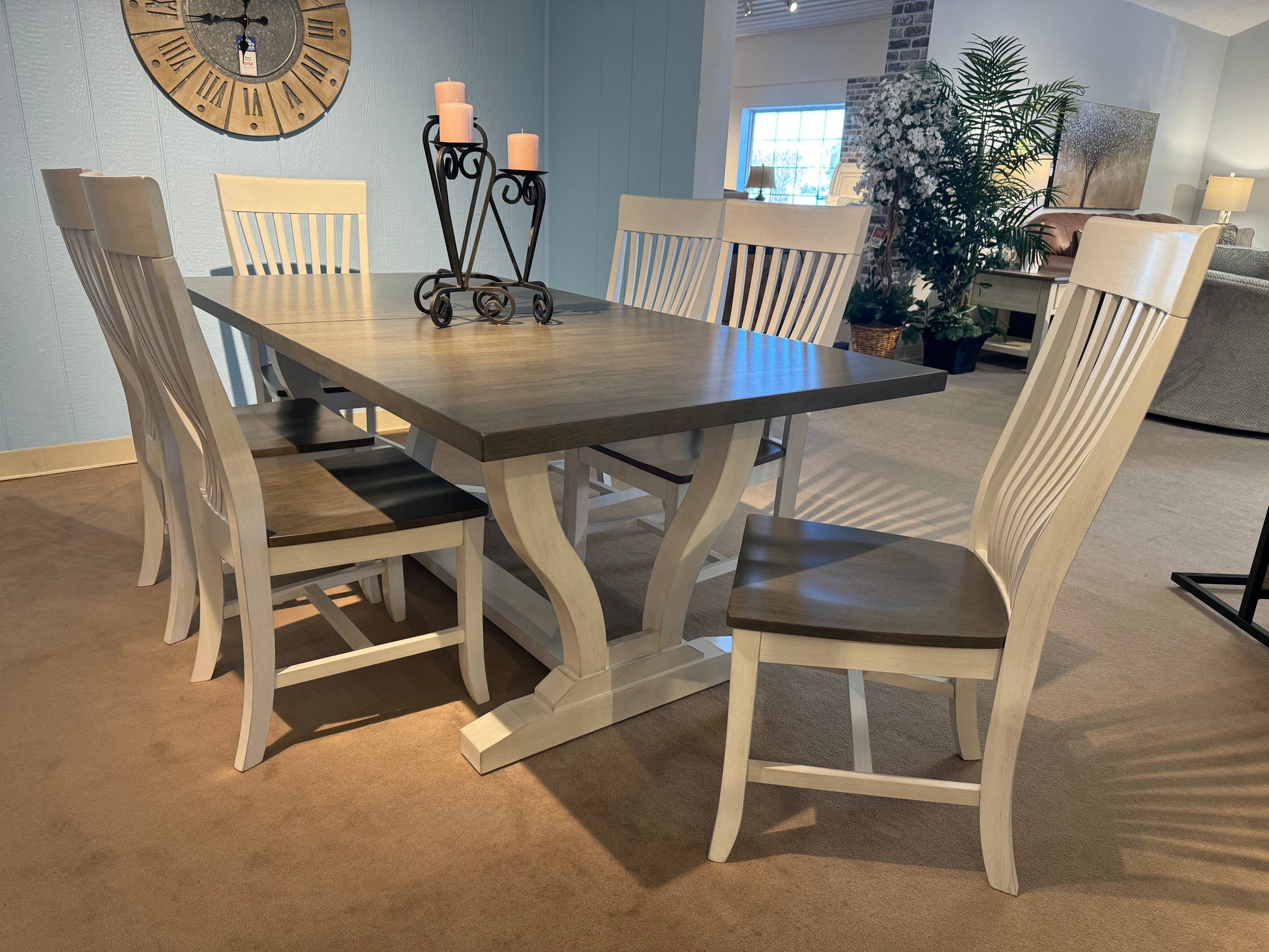 Expertly crafted with solid Parawood, the Curated Amanda Dining Set offers durability and style. Choose from 5 versatile finishes and the option to upholster the seat for added comfort. Perfect for any dining space seeking a mix and match aesthetic.