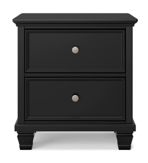 Exuding a timeless casual design, this nightstand is ready to define your personal space. It easily adapts to a variety of interiors, combining a clean, contemporary black finish with framed drawer fronts and round metal knobs. Featuring two storage drawers with dovetail construction and traditional tapered feet, this piece is sure to bring elegant simplicity to your bedroom.