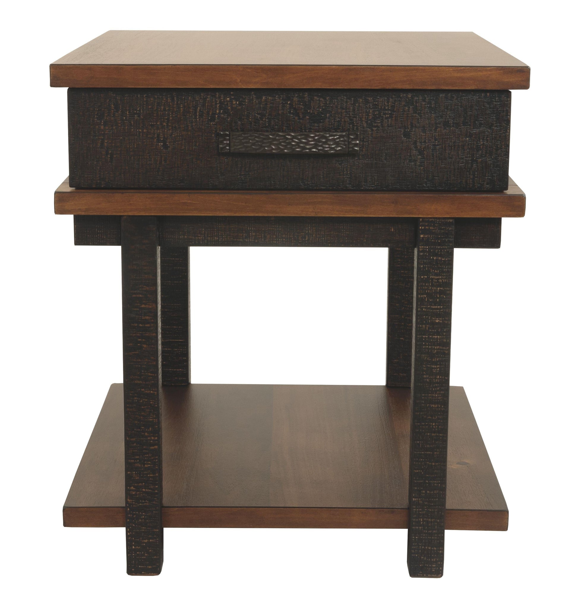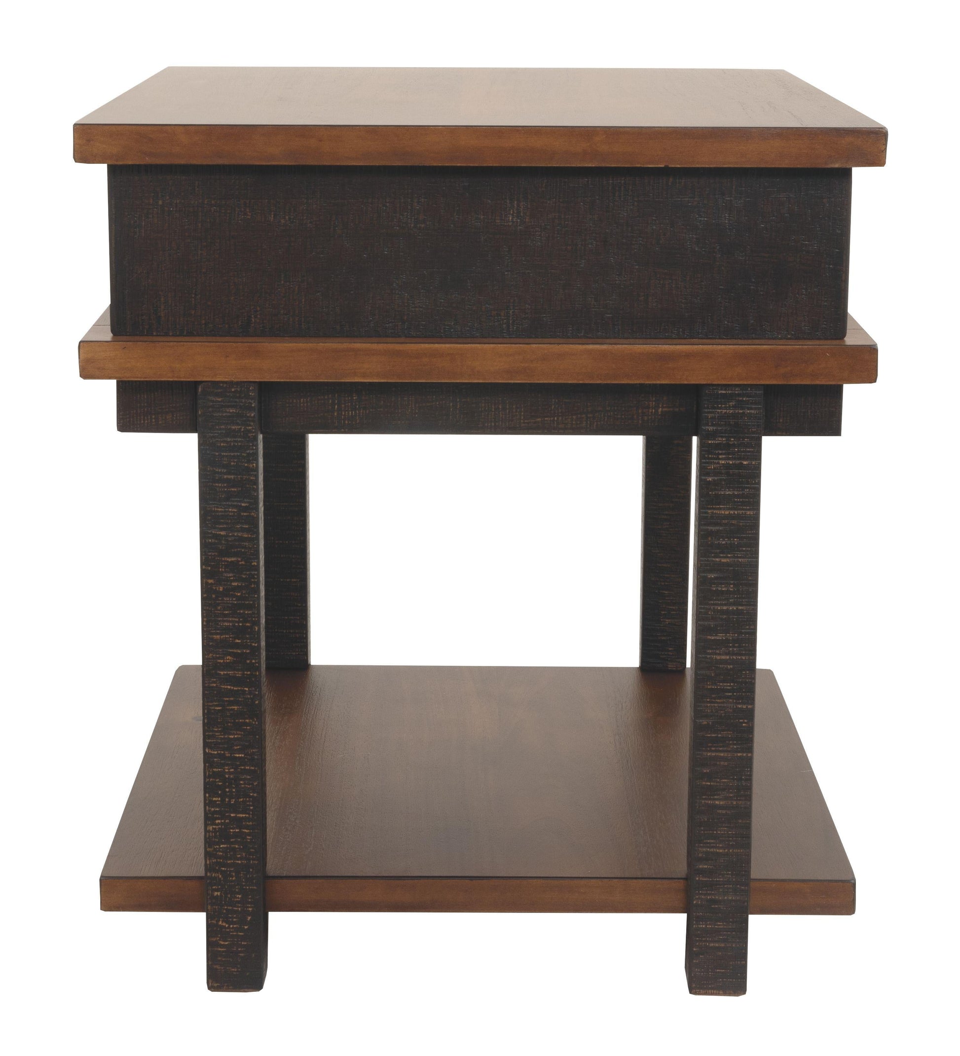Earthy, rustic character. Clean, contemporary lines. The best of both stack up beautifully in this stylish end table. A simple, blocky profile is enriched with a two-tone finish with deep distressing for a decidedly different aesthetic.