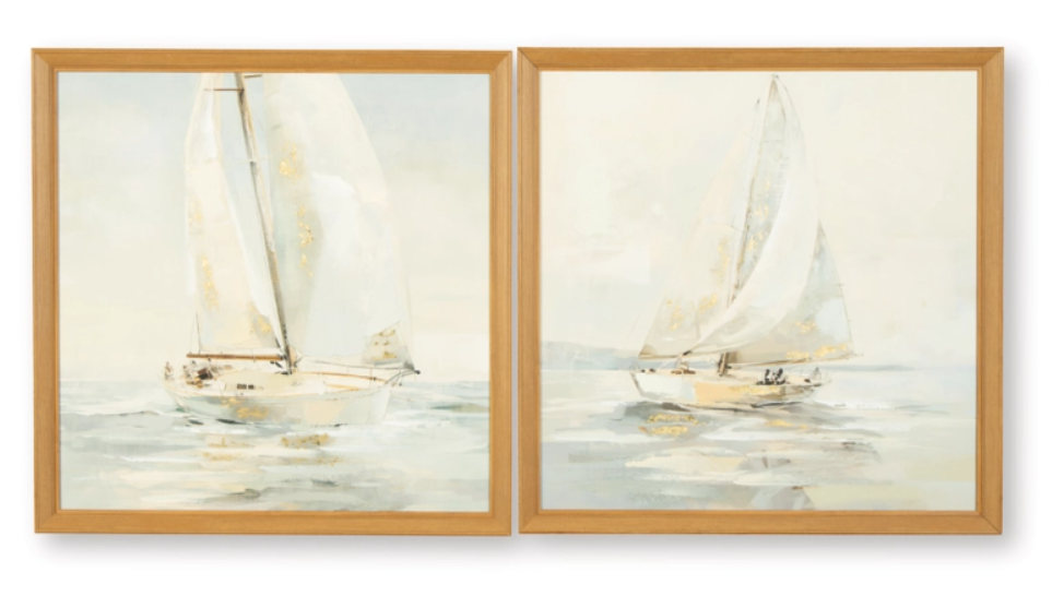 The quiet beauty of sailboats gliding across the water is expertly captured in this wall art set. Soft, dreamy colors and graceful brush strokes evoke a sense of calm and relaxation. Whether they're hung together or separately, these beautifully framed canvases are ideal for adding a touch of nautical charm to your living or office space.